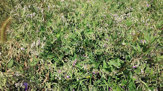 Part of the madness in my defense strategy is 'Benign Neglect.' I carefully hide my new little fruit trees in mountains of weeds. Even Giant Ragweed can be good for something. |